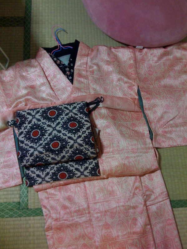 天気がはっきりしない時に1枚ポリの着物があるといいなぁと思っていたので、買ってよかったかも。柄も奇抜ではないので、帯とか小物で遊べそうだ