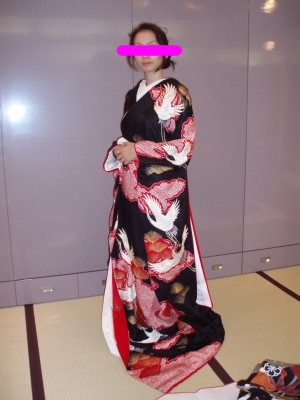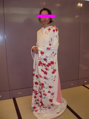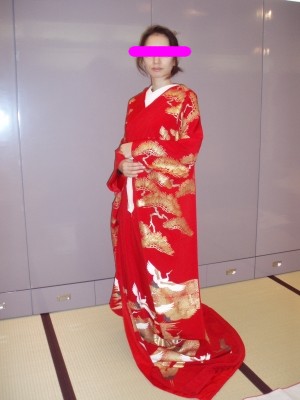 ↑ 白い引き振袖・・白いのを着たかったけど、式場のヤツはちょっと寂しい感じで・・