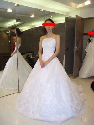 ↑クマ君一押し。一見サイズ的にあきらめたデザインのドレスに似ているけど、レースが違いラメがたくさん使われています。こちの方がフンワリ度がup。しかし、 レースの感じが好きでないので却下